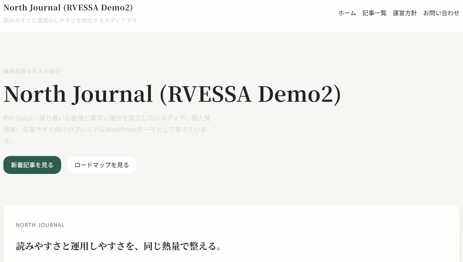 RVESSA(ルヴェッサ) は、静かな強さと実用性を両立したプレミアム WordPress テーマです。